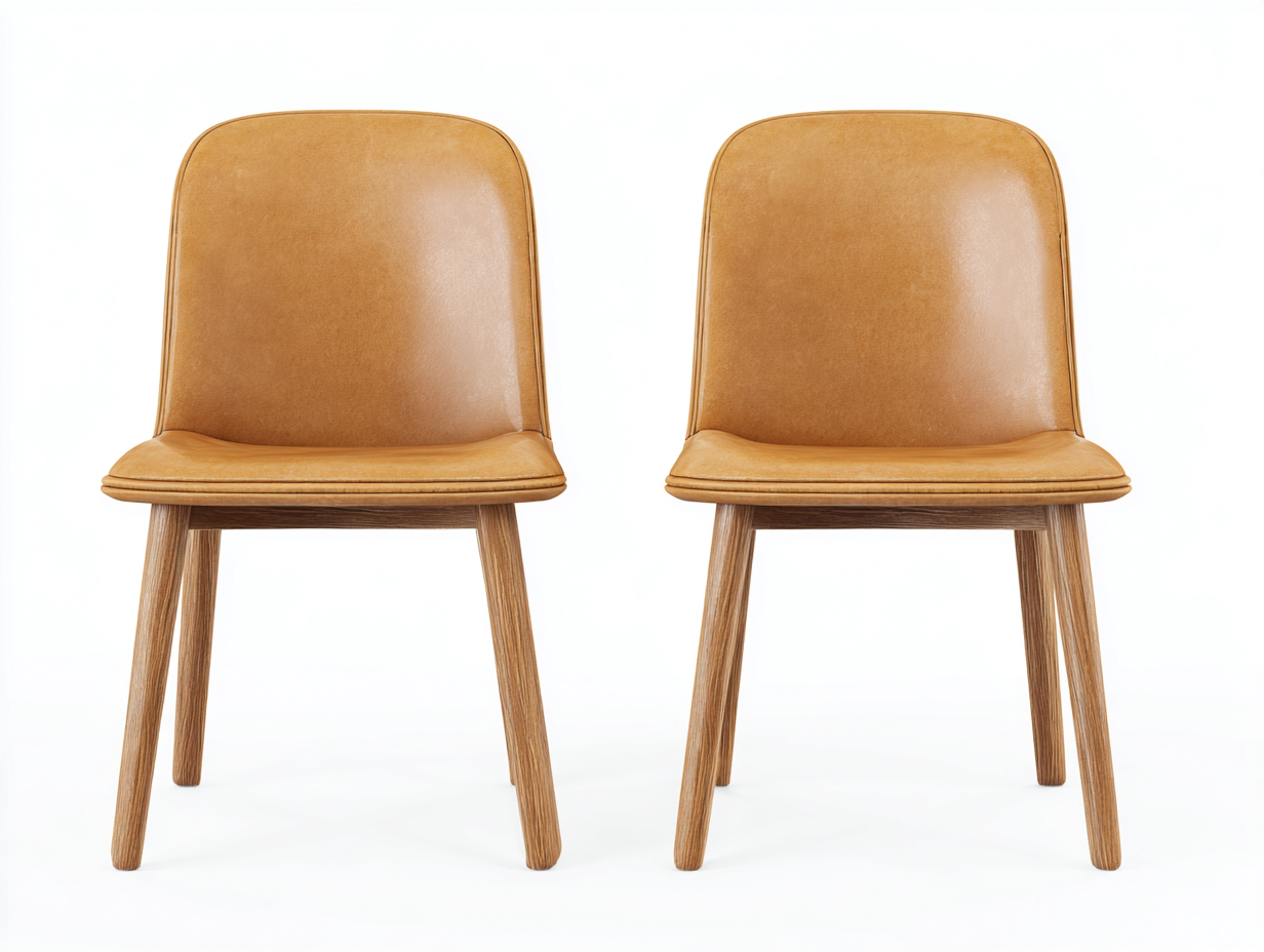Esszimmerstuhl Kunstleder Holz 50x52x82 cm - hellbraun - ohne Armlehnen - modernes Design - für Esszimmer