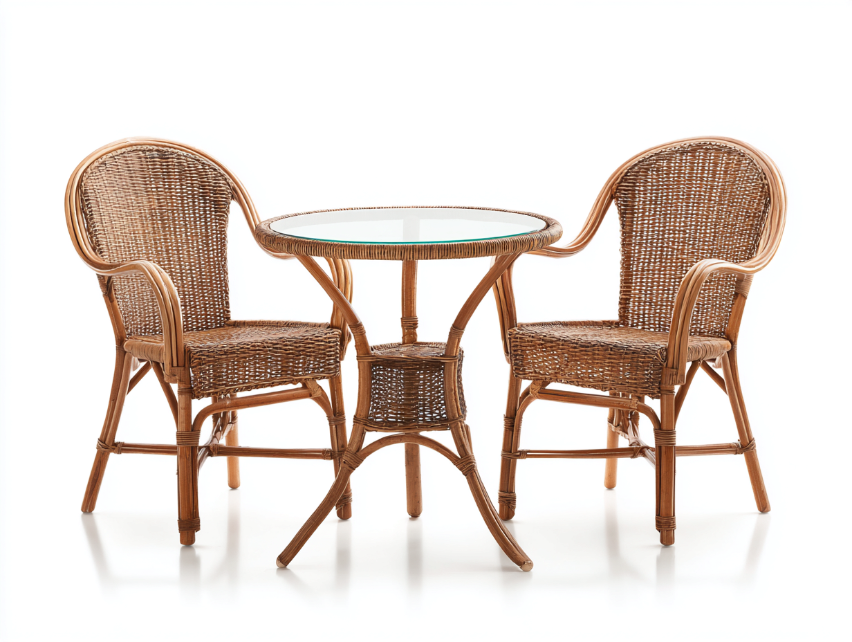 Garten Lounge Set Rattan 68x72x92 cm - natur-braun - 2 Sessel mit Tisch - klassisches Design - für Garten Terrasse