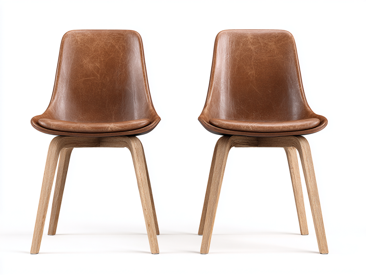 Die Sitzfläche ist mit strapazierfähigem Kunstleder in braun bezogen und weich gepolstert. Die Sitzschale ist auf einem stabilen Holzrahmen befestigt. Die massiven Holzbeine in natürlicher Holzoptik sorgen für Stabilität und eine langlebige Nutzung.